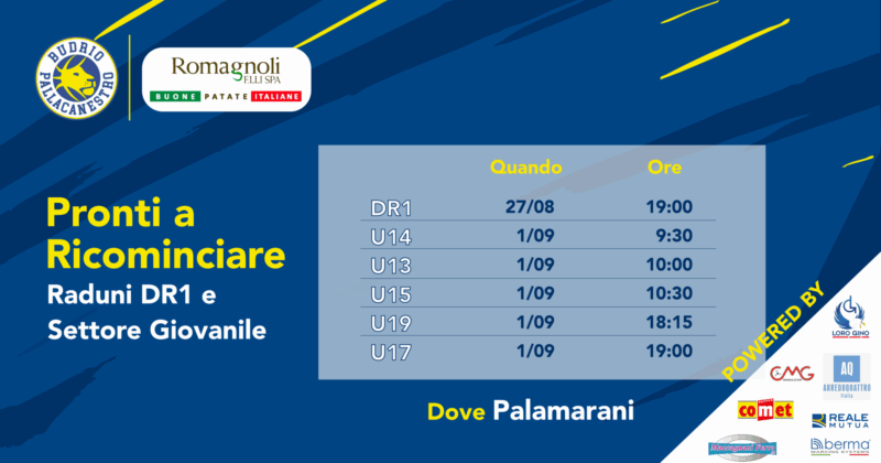 La stagione sportiva 2025/2026 è pronta a partire e, come da tradizione, i raduni della Prima Squadra e del Settore Giovanile segnano il momento ufficiale di inizio del nuovo percorso cestistico di Pallacanestro Budrio. Prima Squadra Il raduno della Divisione Regionale 1 è fissato per domani presso il PalaMarani.Giocatori e staff tecnico si ritroveranno per avviare…