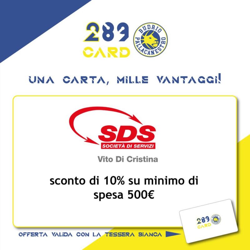 Da SDS – Società di Servizi, in Via Bissolati 41 a Budrio, Sponsor Sostenitore della 289, con una spesa minima di € 500,00, presentando la vs 289Card avrete diritto ad un 10% di sconto !!SDS è un’azienda specializzata nella fornitura di un’ampia gamma di servizi, comprendente sia le ristrutturazioni edili, che prestazioni di idraulica, giardinaggio e lavori domestici.Grazie…