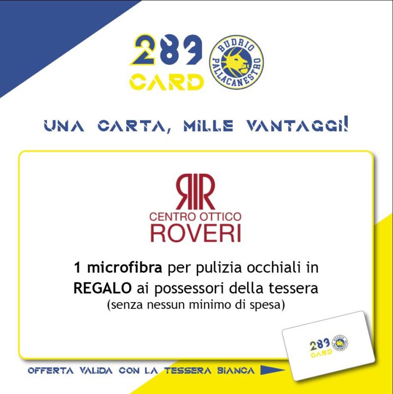 Da Centro Ottico Roveri, Sponsor Sostenitore della Pallacanestro Budrio, ti aspetta con la tua 289Card Bianca una graditissima sorpresa !Occhiali sporchi ? Appannati ?? Desideri che le tue lenti tornino come appena comprate ?Il gadget regalo pensato per te, presentando la tua 289Card Bianca, farà al caso tuo !!Recandoti da Centro Ottico Roveri, in Piazza…
