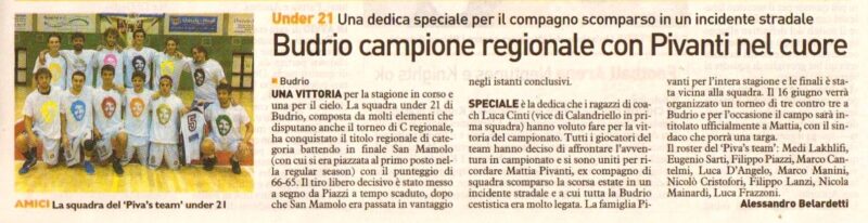 Rassegna stampa, dal Carlino di oggi: “Budrio campione regionale con Pivanti nel cuore”